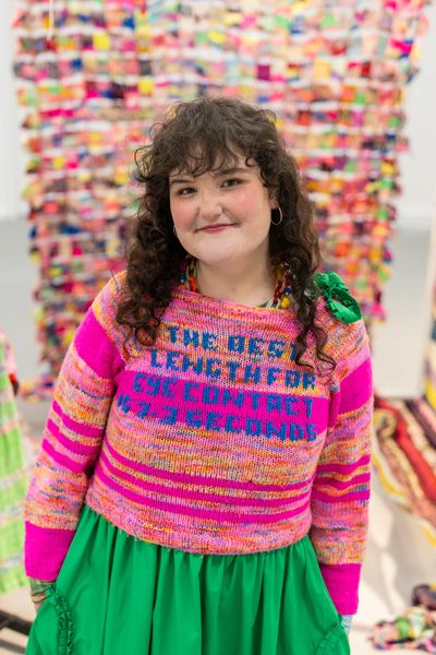 Holly Goodridge is a neurodivergent artist working across hand-knitted garments, large-scale crochet installations, and participatory practice. Her work explores neurodivergent embodiment, sensory politics, and collective care. Through immersive crochet environments and hand-knitted sweaters that audiences are invited to wear, Holly creates spaces that encourage slowing down, touch, and shared connection.